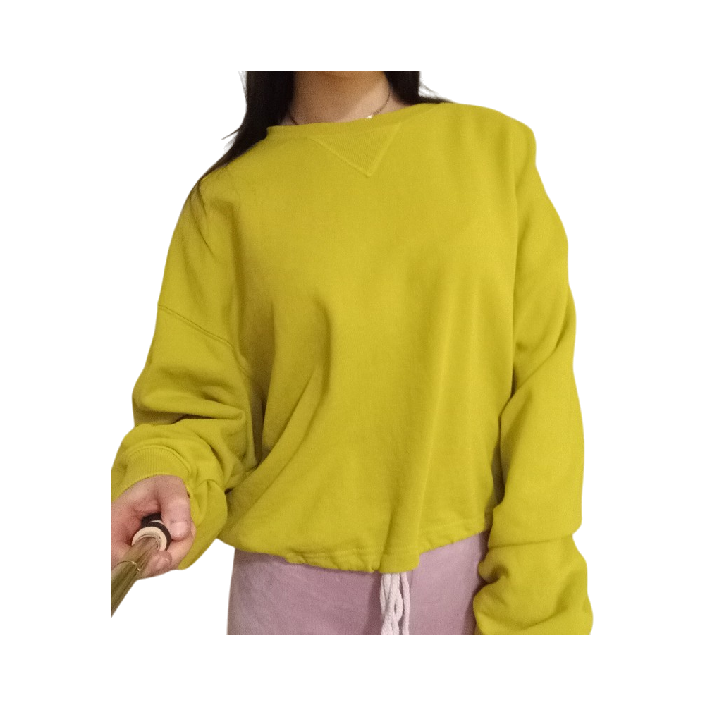 Casual oversized sweatshirt. In real life slightly a different color than in the pictures. Drawstring at the bottom.