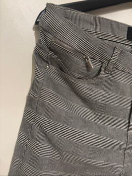 Gray checked pants with zipper details. Size 42. Material 65% cotton, 35% polyester and 4% elastane. Measurements approx: width 44 cm, length 100 cm