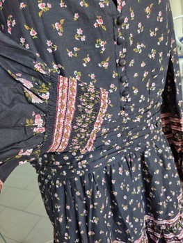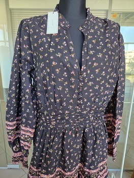 Black floral mini dress with long sleeves and button details. Made of 100% cotton.