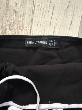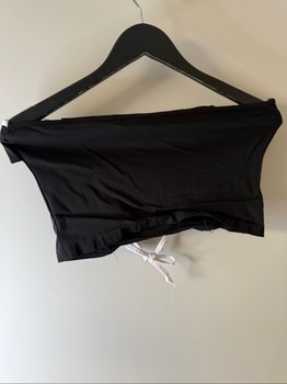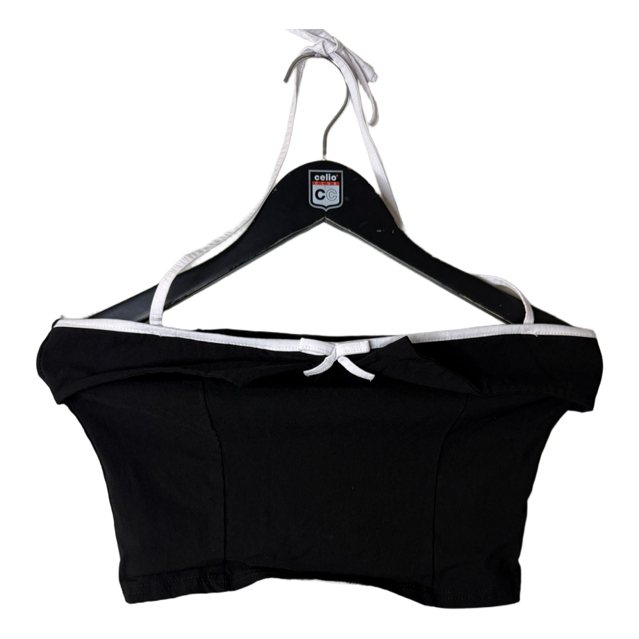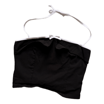 Black cropped halter top with white trim and a small bow detail. Size 40.