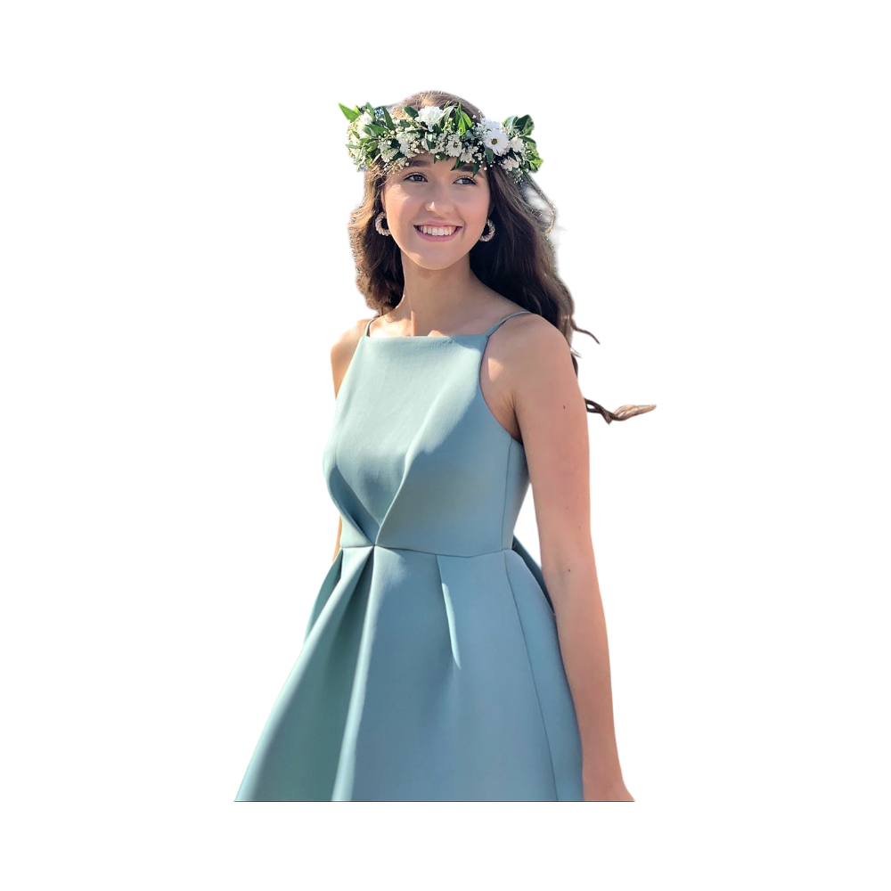 Stylish light blue dress without sleeves, with beautiful details. Suitable for parties or special occasions.