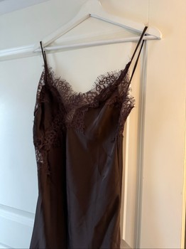 Brown satin dress with lace trim S
