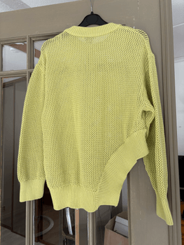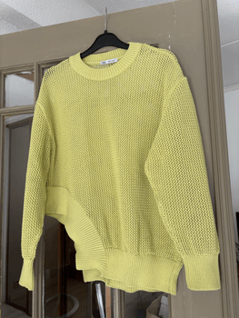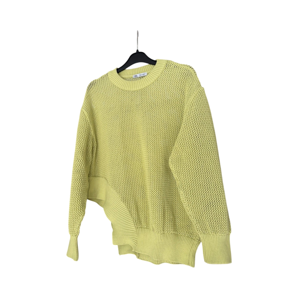 yellow sweater, asymmetric knit, Zara jumper, loose fit sweater, bright color pullover, polyester knit, small size sweater, statement knitwear, cheerful top, vibrant jumper
