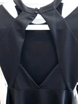 Neat blouse with a beautiful back. Soft, silk-like feeling fabric, does not wrinkle. Unfortunately a bit too small for me.