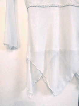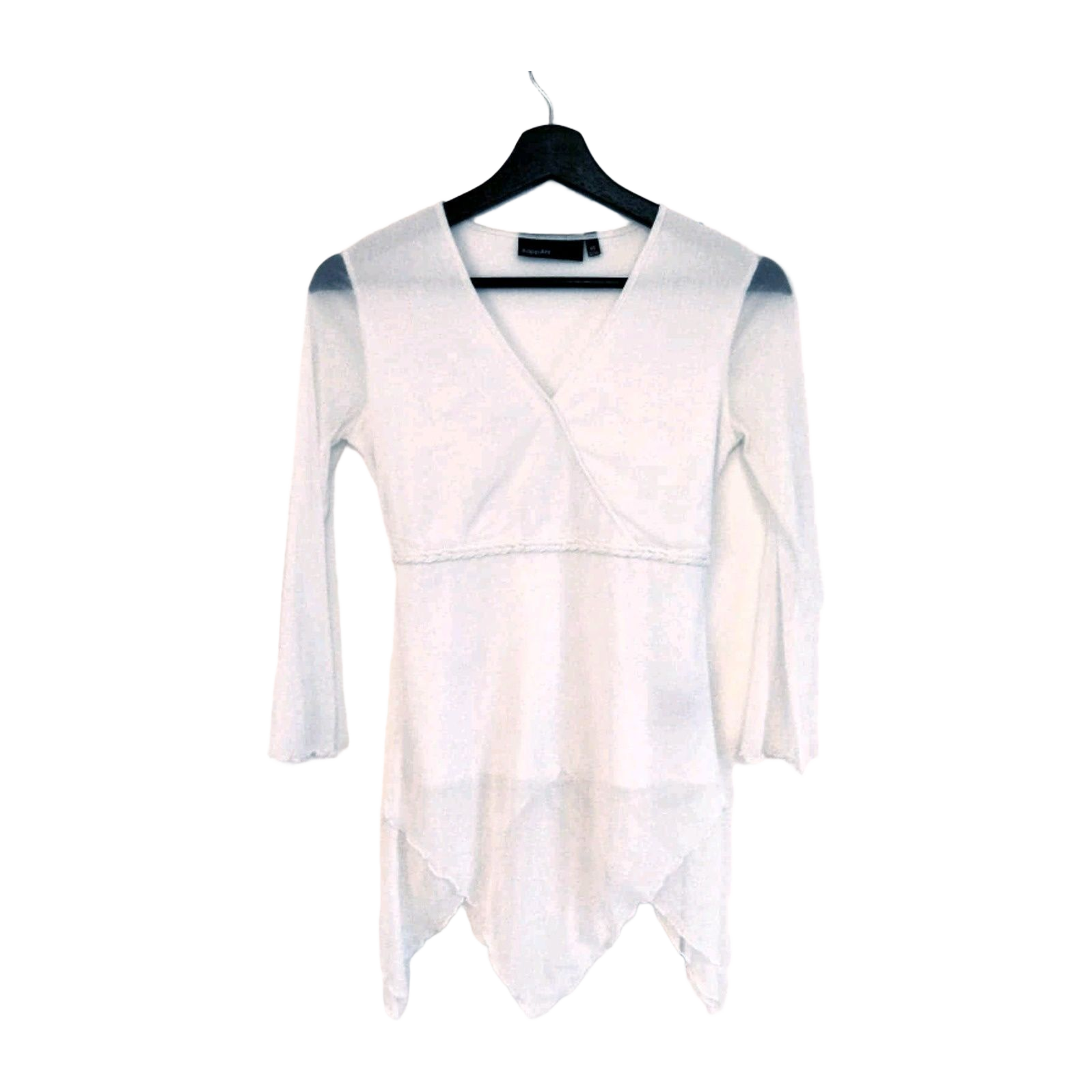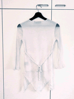 Pretty white, lightweight party blouse. Wrap-style (but sewn closed) top, sleeves and hem transparent chiffon (under the hem an undershirt, so not see-through). Under the bust a braided white cord that can be tied to the back. Free delivery with code JJ1591 ✨