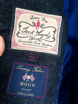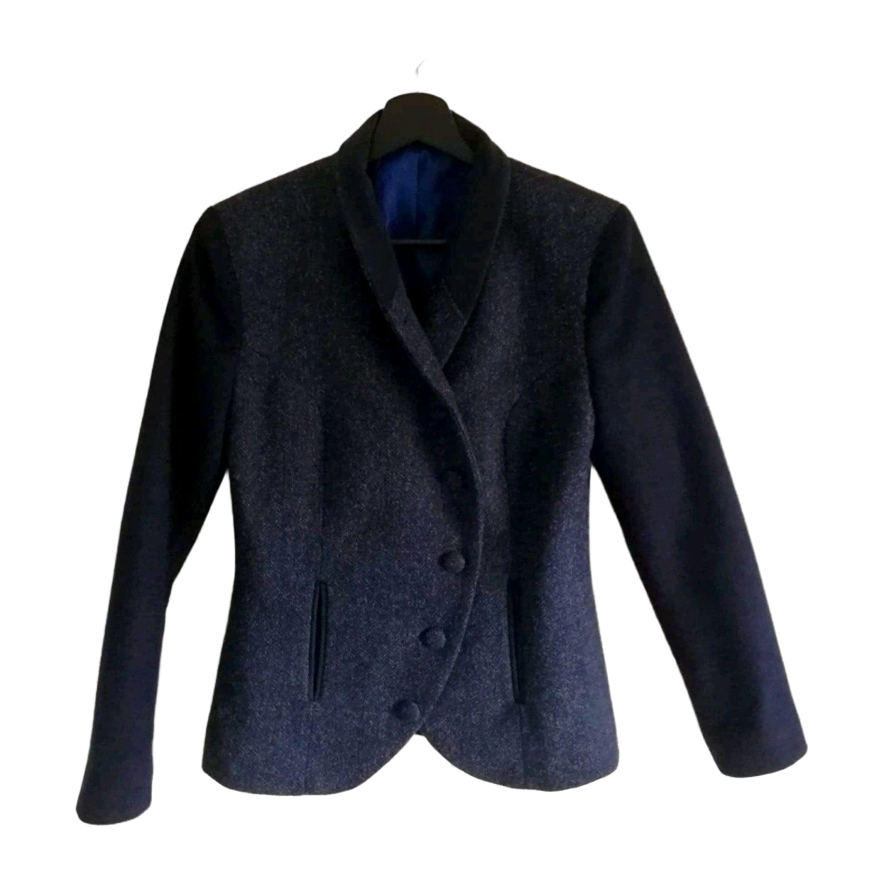 Jack Murphy, Ladys' navy 'Beth' Tweed Jacket. Made from 100% Shetland wool and featuring a velvet collar and traditional button front fastening. Perfect for autumn! Condition like new, used only few times.