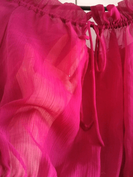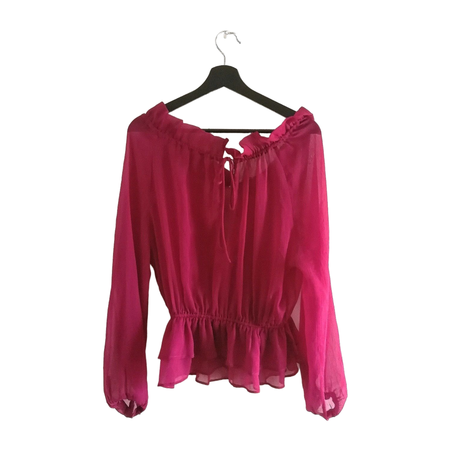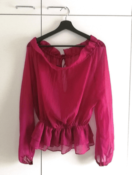 Wine-red (aniline-tinged) blouse. Lightweight, translucent fabric. New, tags removed but never worn. Size 36, but fits more like size S due to a tighter ribbed hem that keeps the otherwise loose top in place. Front has ribbons that can be tied if desired. Free delivery with code JJ1591 ❤️