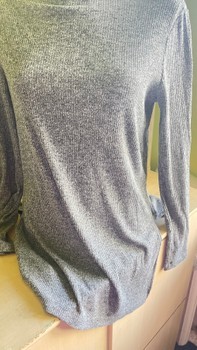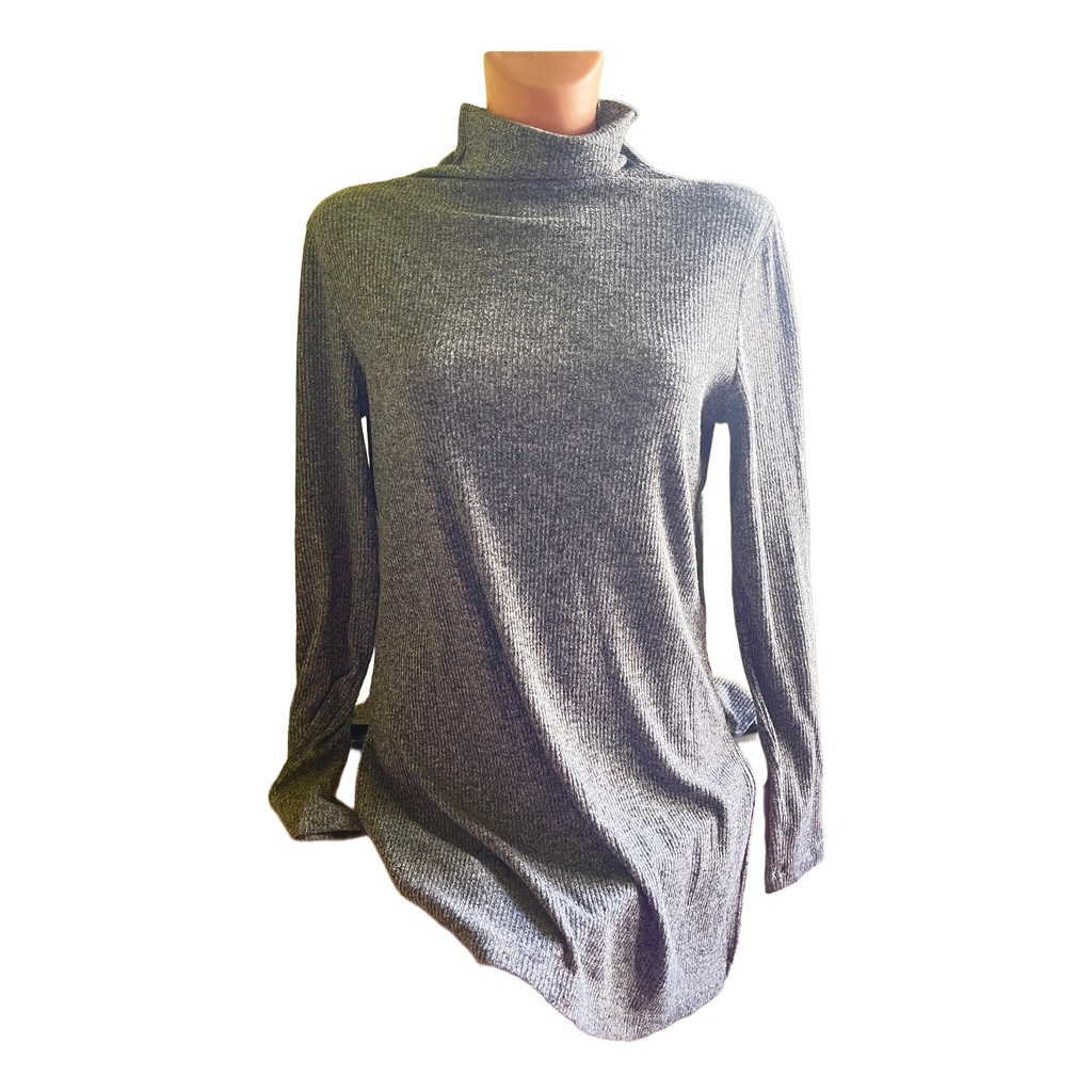 Grey long-sleeved turtleneck top with a ribbed texture. Size M.