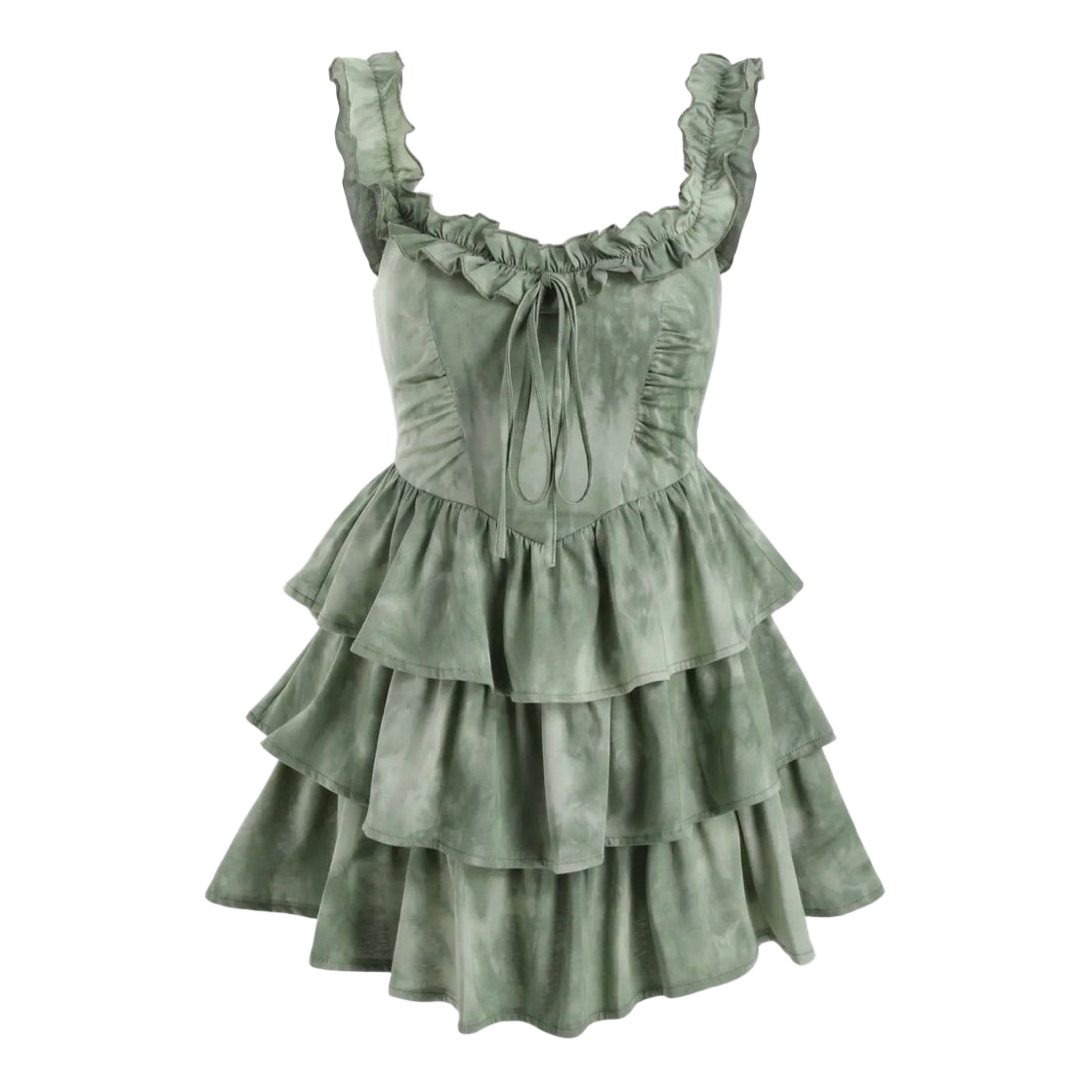 Green tiered tie-up dress