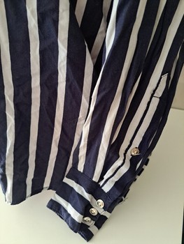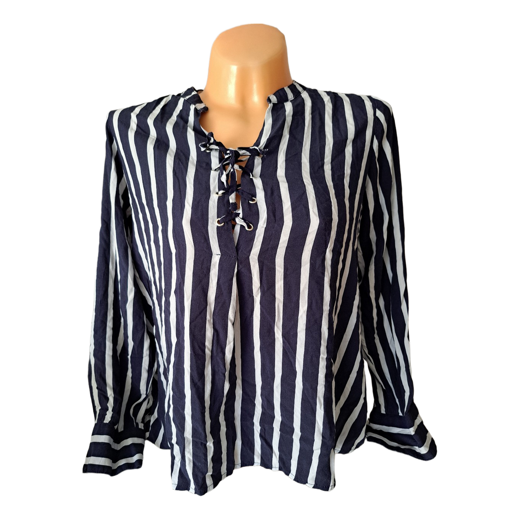 Striped blouse with a lace-up neckline and long sleeves. Size M.