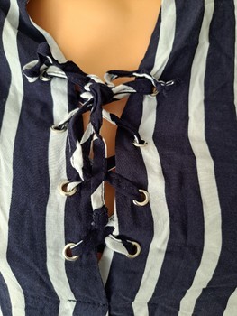 Blue striped lace-up blouse
