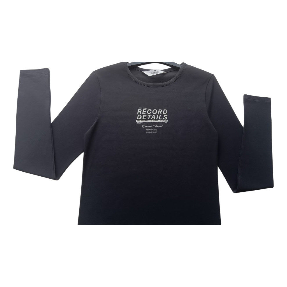 Black long-sleeved shirt with a print. Made of cotton and elastane.