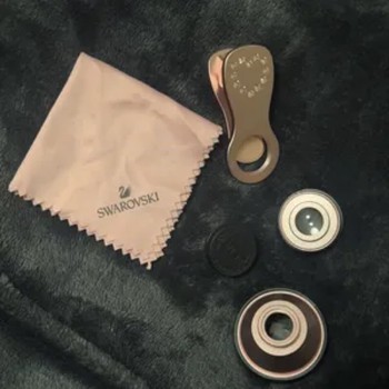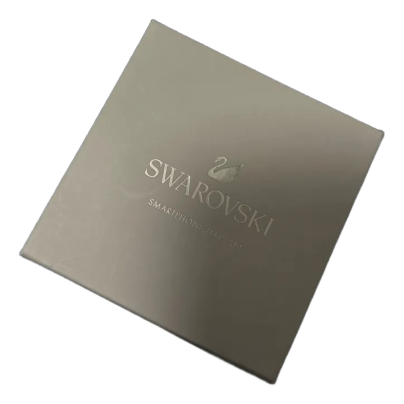 Rose Gold tone Swarovski smartphone lens set with embellishments. Includes original box, storage pouch, and cleaning cloth.