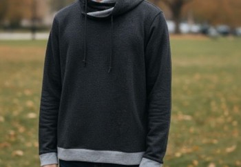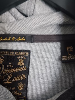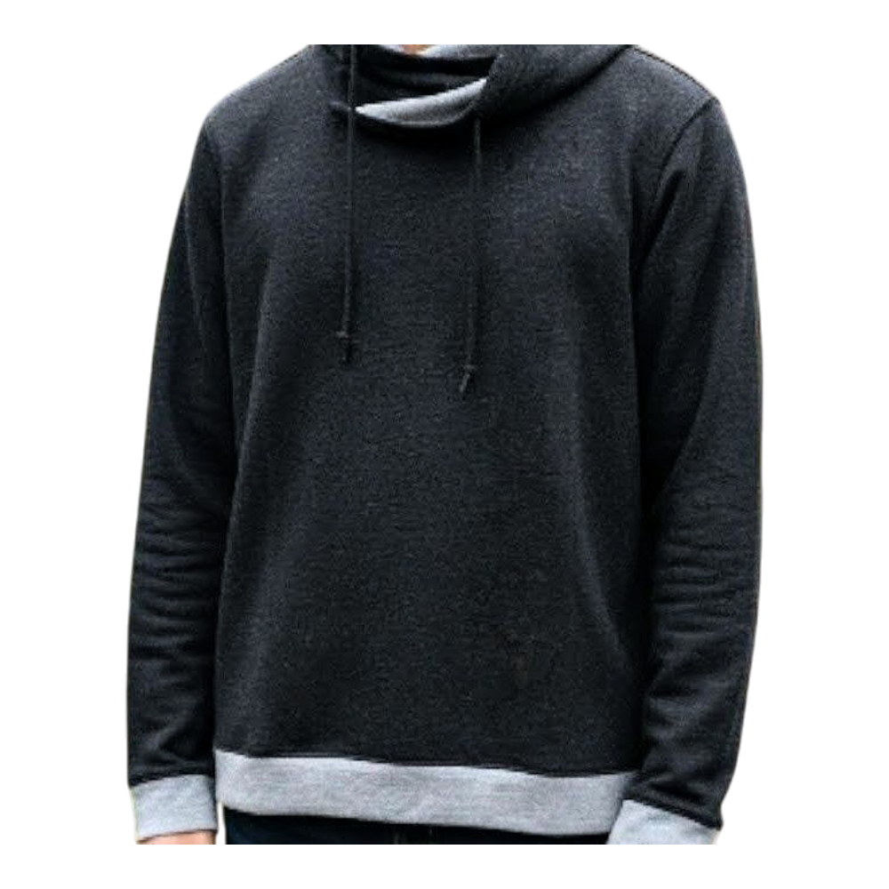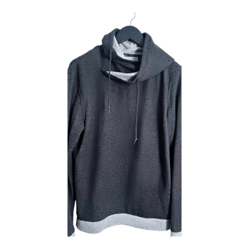 Dark gray hoodie with light gray details. Size L. Good condition. Length from shoulder 67 cm, shoulder width 49 cm.