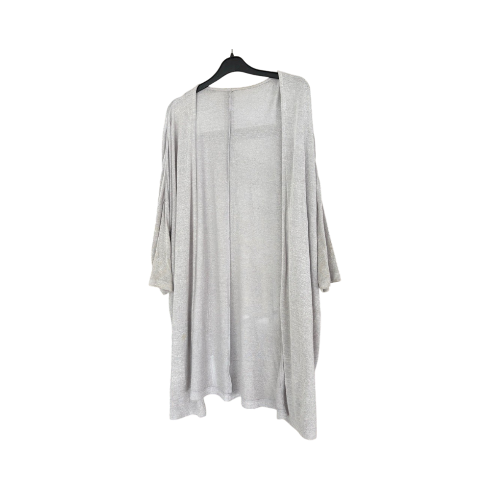 Sheer grey cardigan by Japanese brand Ropé Picnic. Made from UV-protective material, ideal as a light cover-up for breezy summer days. Size 40, best fits medium due to slightly tighter sleeves. Very good condition.