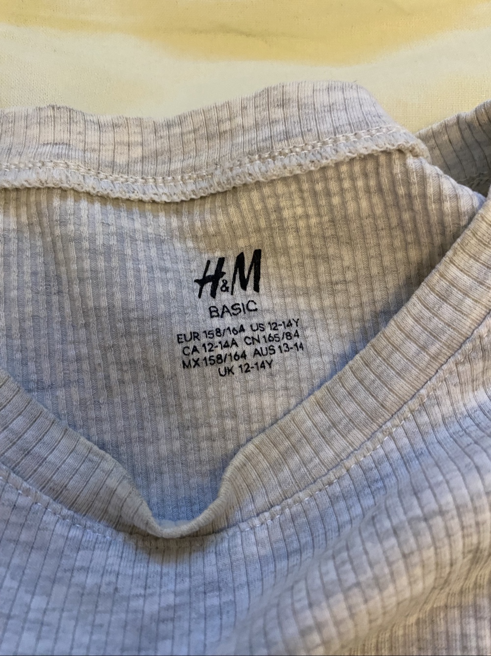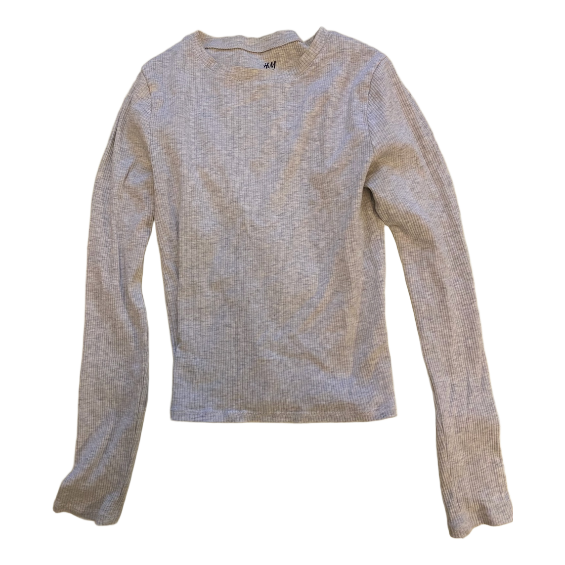 Ribbed long-sleeve top in grey. Features a rounded neckline and H&M branding.