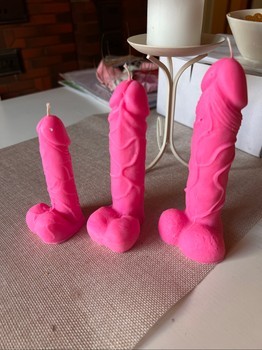 3 pcs candles sold as a set. Color dark pink. RRP over €30, cheap because I myself cannot bring myself to burn or display them in a household with children. In storage there may have been some small marks but otherwise clean and intact condition.