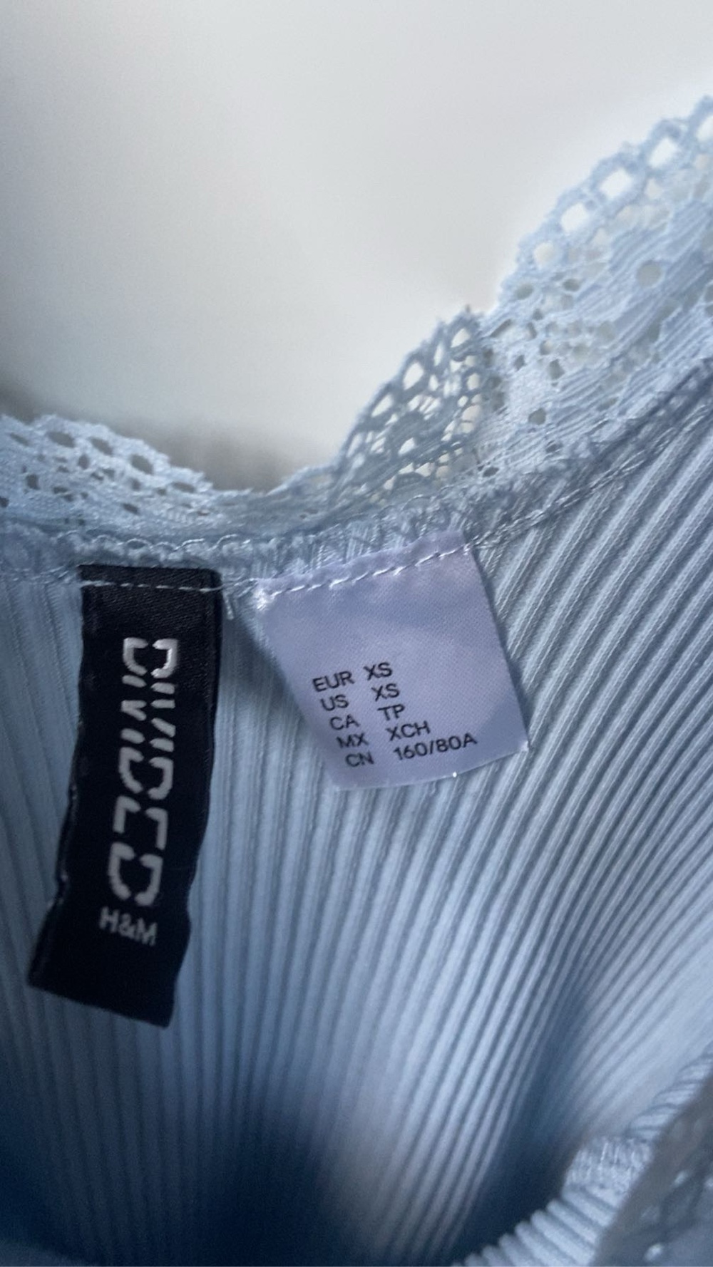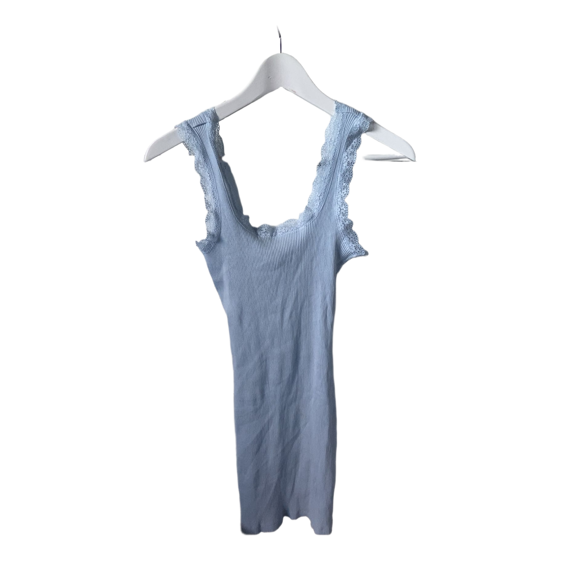 Light blue ribbed top with lace trim. Size XS.