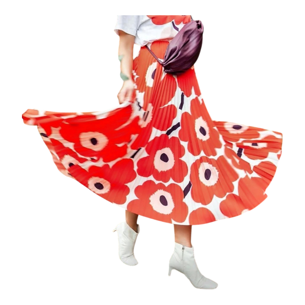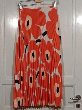 Marimekko Ihana Viserrys skirt. Slightly used and good. Size S. Waist unstretched approx. 69–70 cm, stretches. Elasticated waistband. Also a zipper on the side. Skirt length approx. 84 cm.