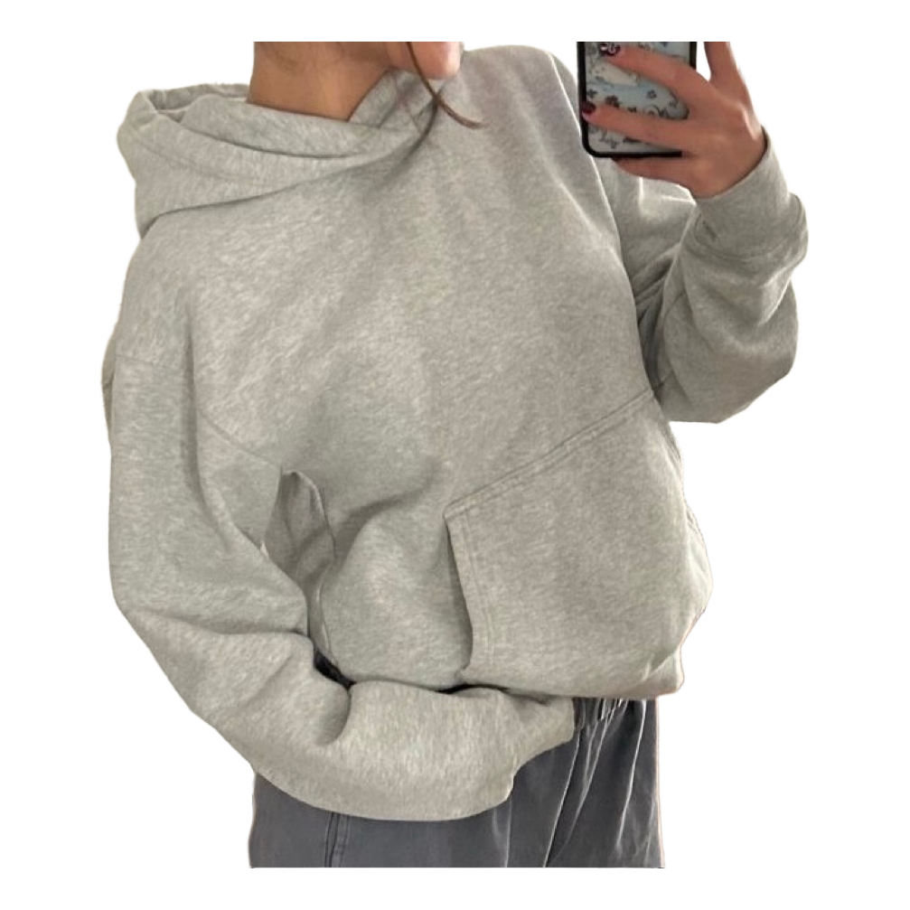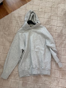 Grey hoodie with a kangaroo pocket and an oversized fit. Size M.