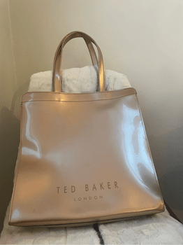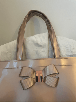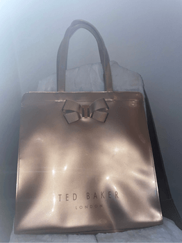 Free shipping during the weekend. Ted Baker handbag, color rose gold. Has been used a little; the bag shows signs of wear, likely from dents in the cabinet. Most marks are on the front and back; I have tried to show them in the pictures. Sold-out model, bought from Zalando.