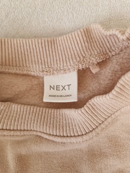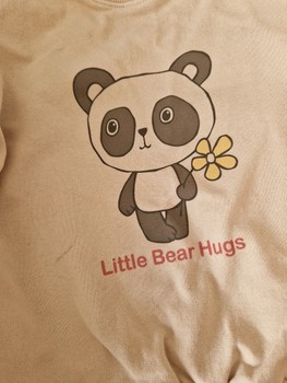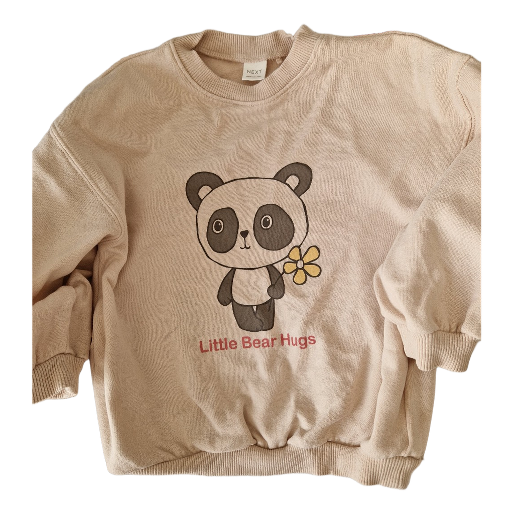 Beige sweatshirt with a panda graphic and Little Bear Hugs print. Made from a cotton blend. Size 110.
