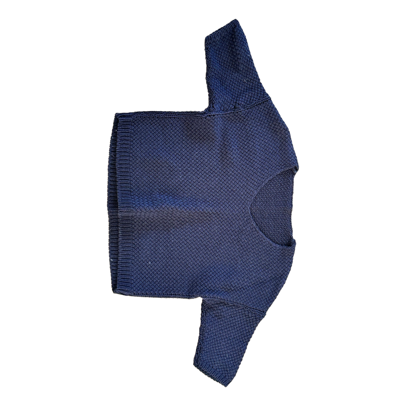 Navy blue jumper with textured knit pattern and round neckline. Massimo Dutti
