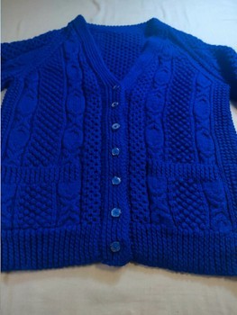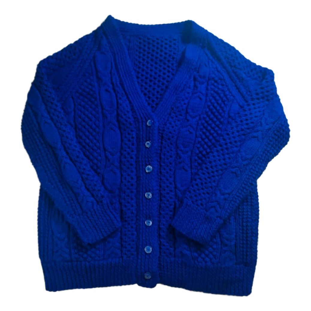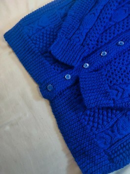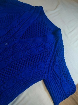 Käsintehty, neuletakki, sähkönsininen, koboltinsininen, palmikkoneule, Aran knit, chunky cardigan, handmade, vintage, neule, talvivaatteet, pehmeä neule