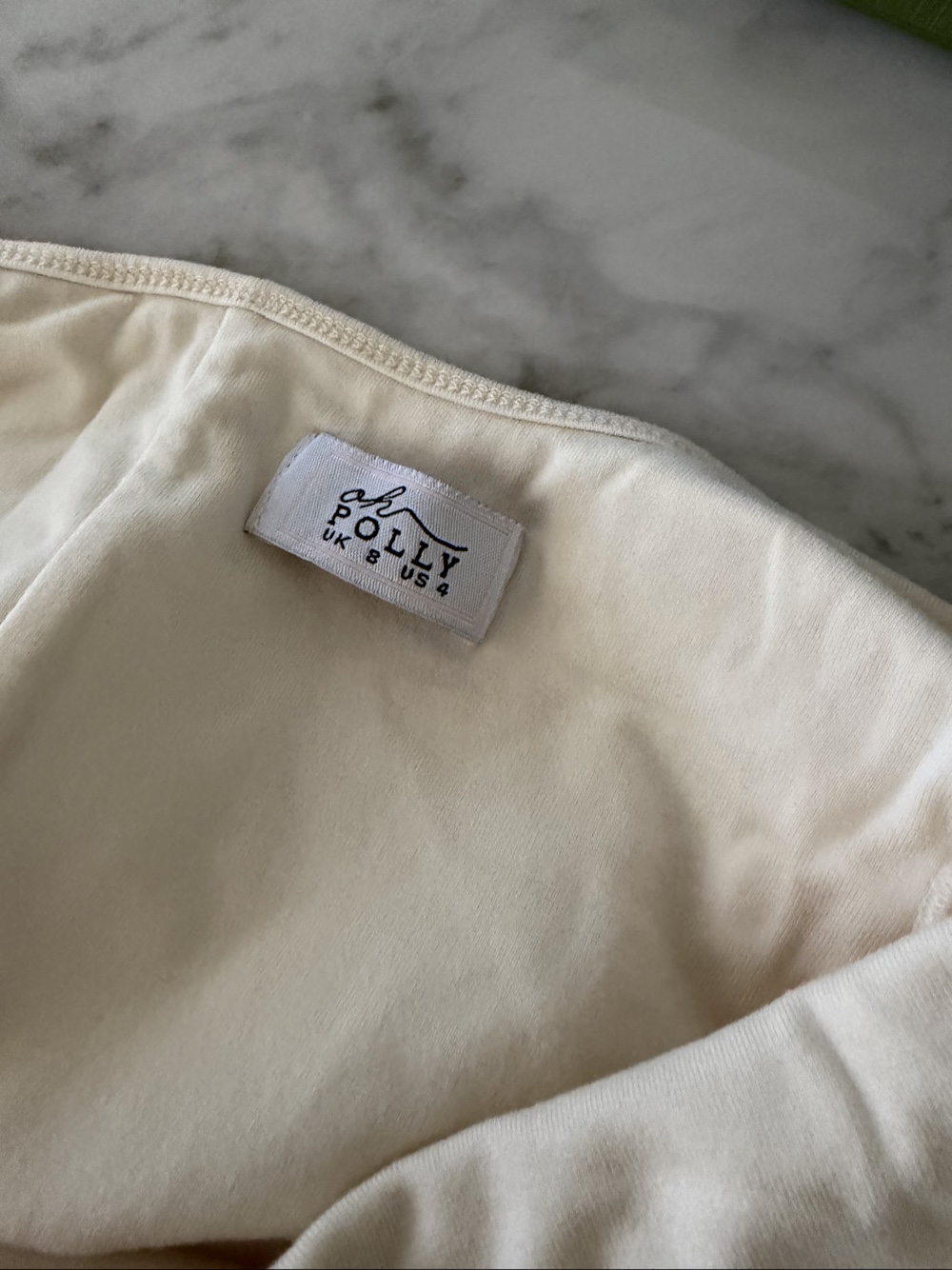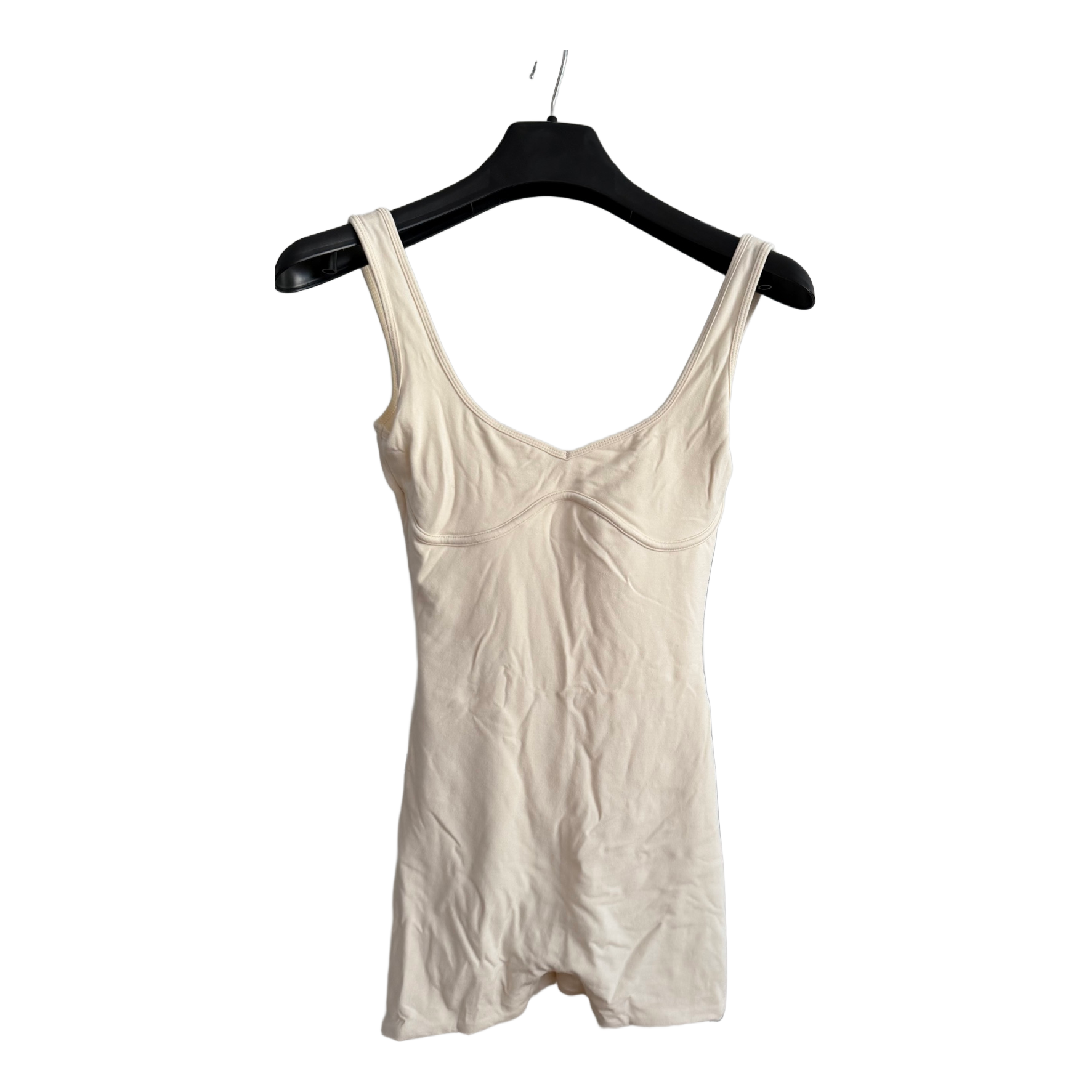 Cream-colored short romper. Size UK 8 / 36. Soft material.