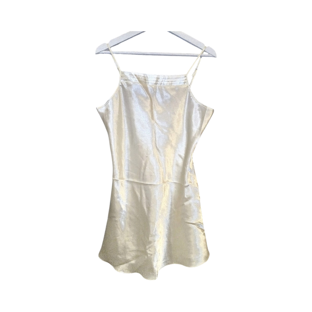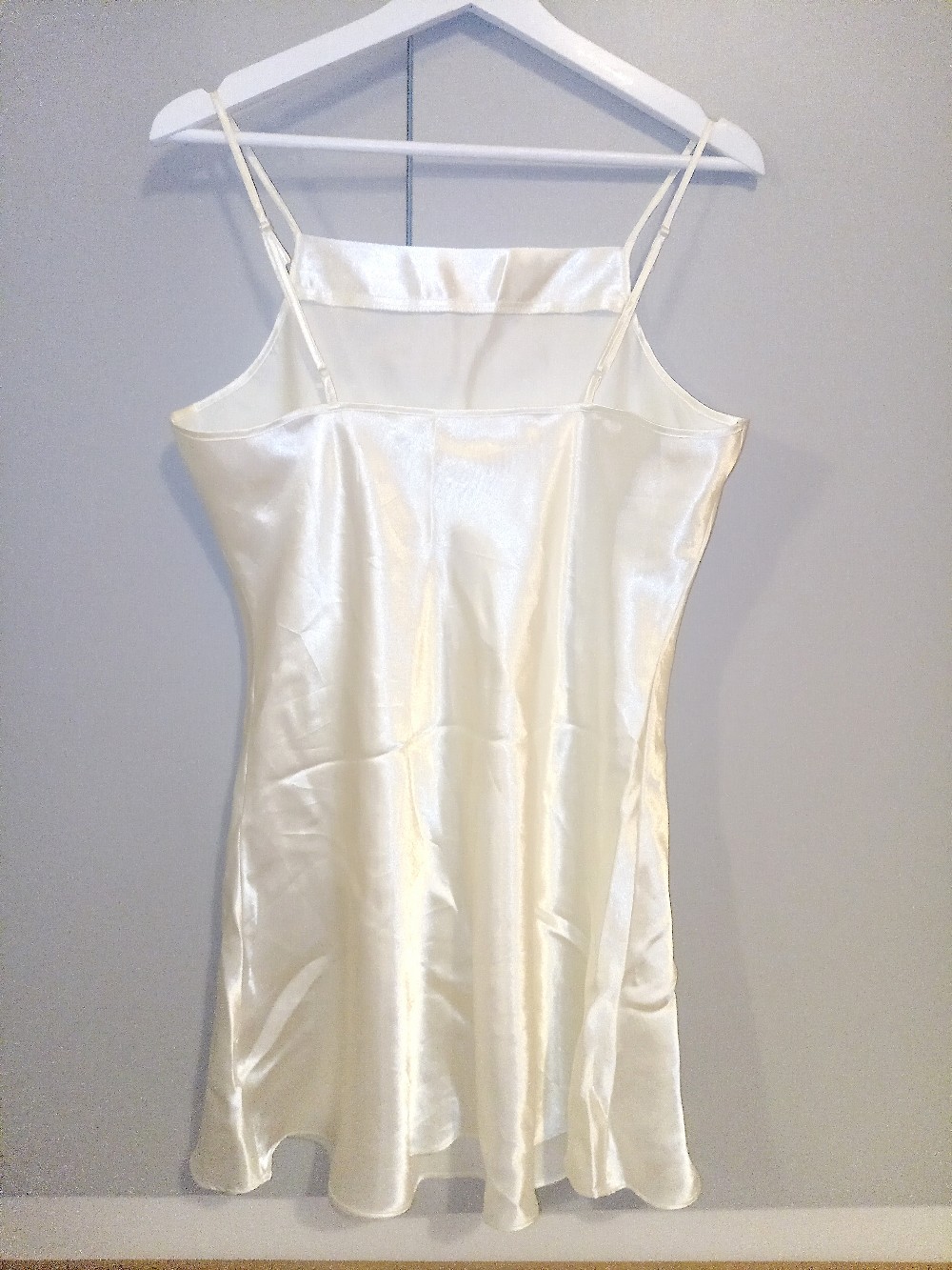Satin nightdress / underwear. Color ivory white in person. Size label missing, estimated M. Adjustable straps