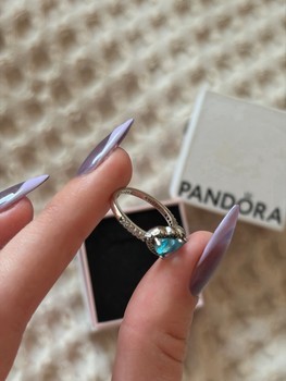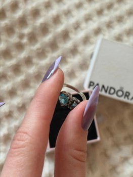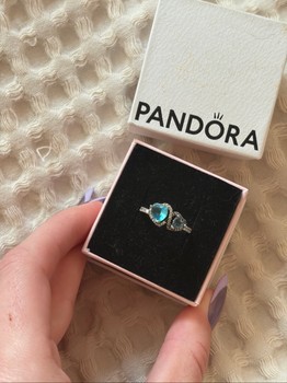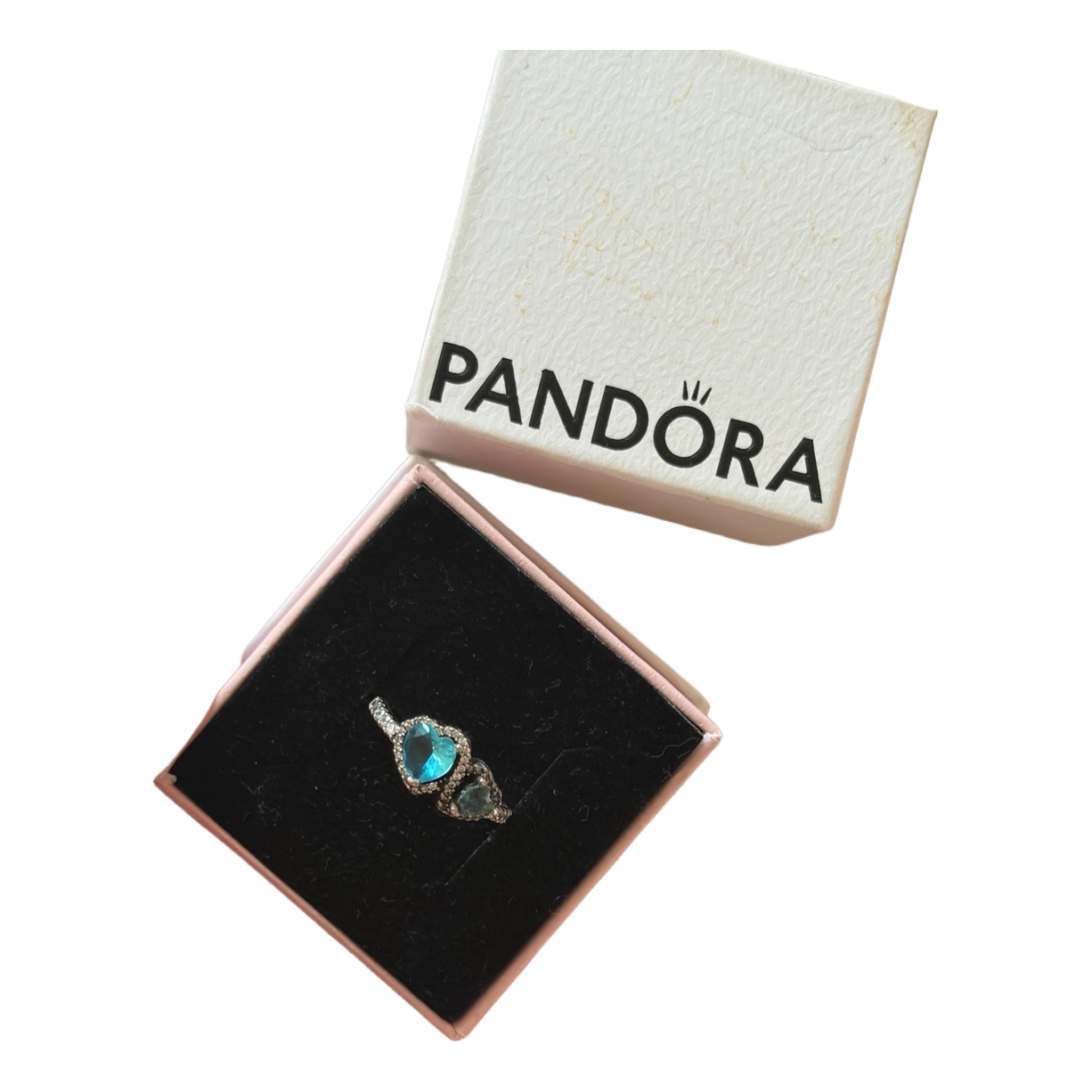 Sterling silver ring featuring two heart-shaped stones in blue tones. Without Pandora box.