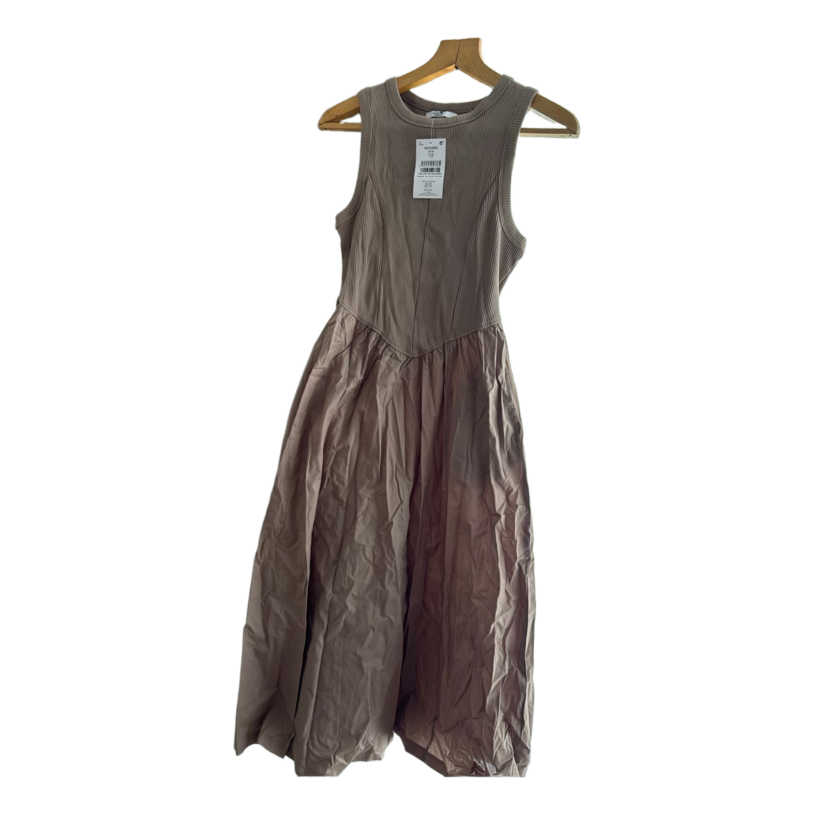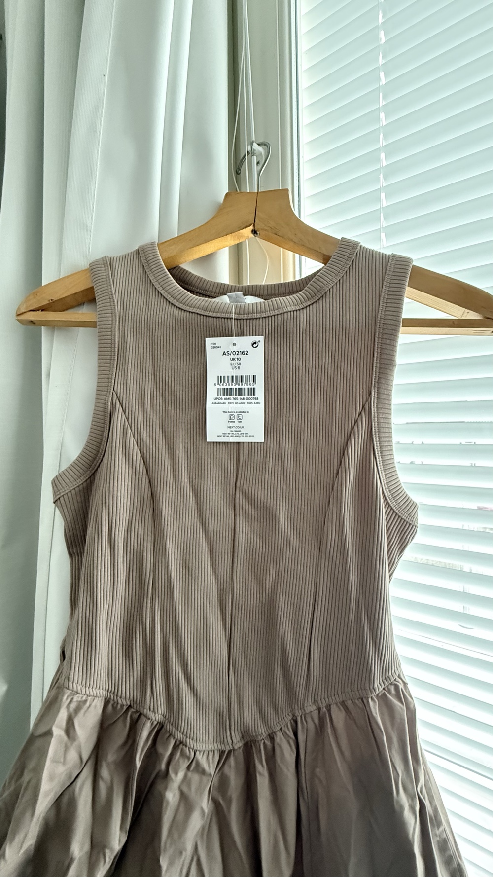 Beige sleeveless dress with a draped hem and pockets. Size UK 10 EU 38 US 6. New with tags.