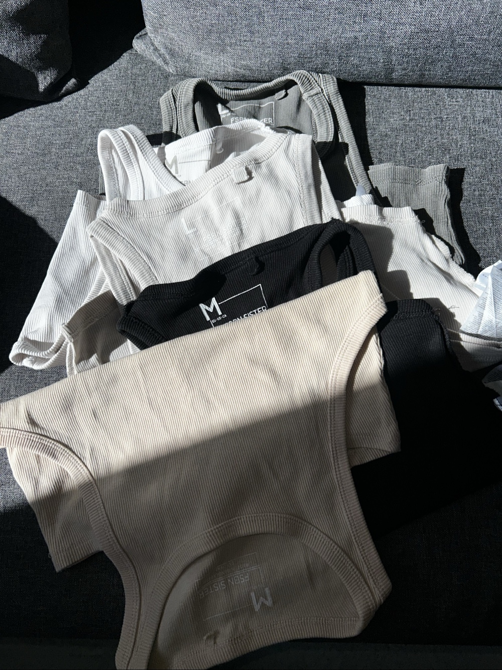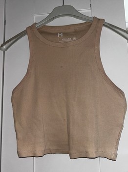 I sell several crop tops - two little tees in sand and white color have small stains (visible in the photo), others are in good condition. Comfortable and easy to pair with anything. Because of the sand and white tees the price is lower. Price shown is for one, not for all. Numbered according to the photos: 1 - €2, 2 - €4, 3 - €4, 4 - €2, 5 - €4. Sizes are shown next to each tee in the photos.