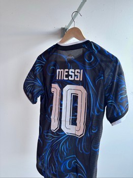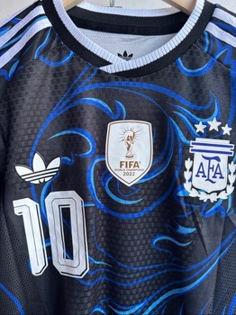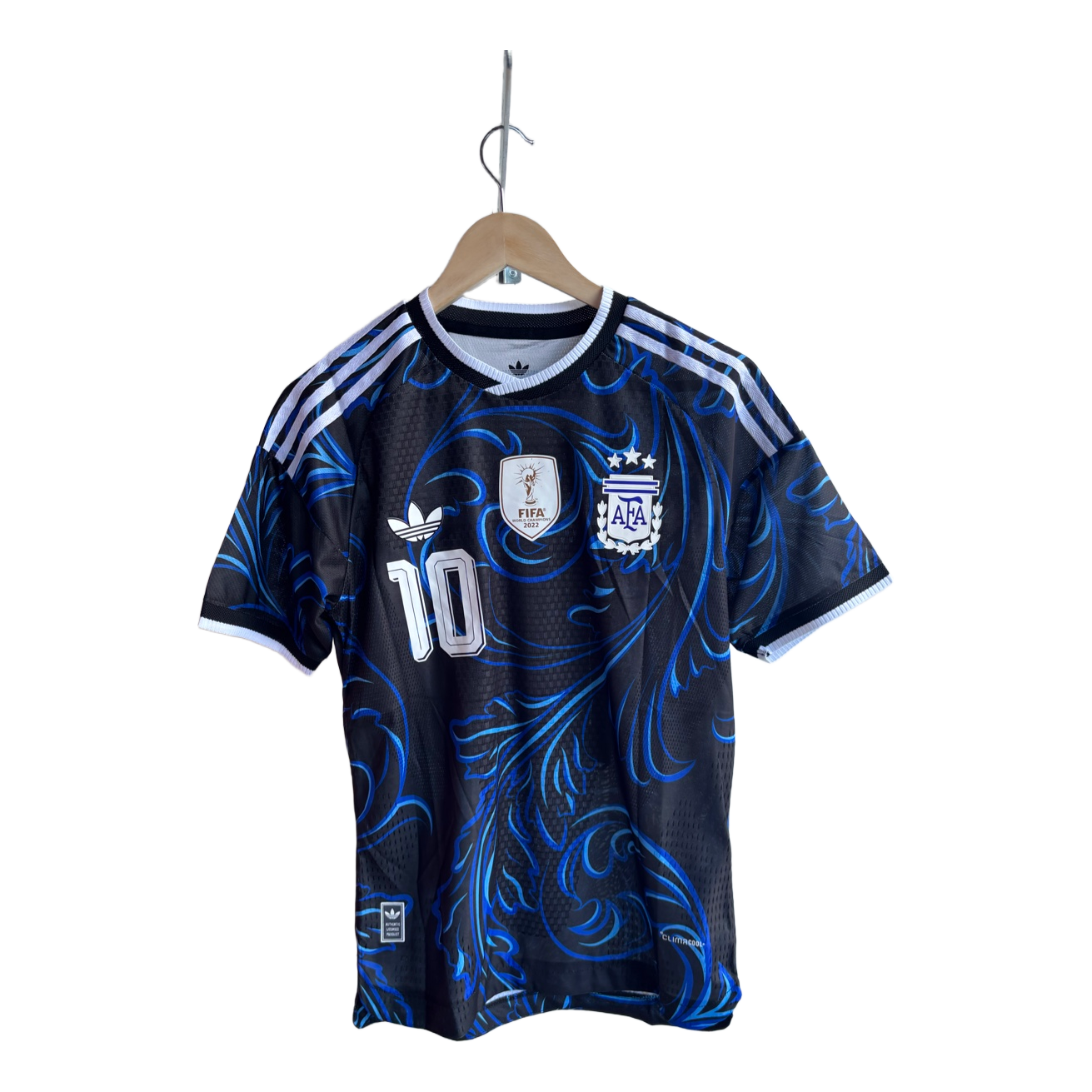 Black Argentina match shirt. On the back number 10 and Messi, on the front FIFA World Champions 2022 badge.