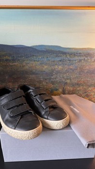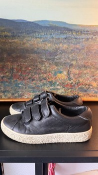 Leather Velcro sneakers, used sparingly. The sole is flat, so wear shows easily. In neat condition and polished and moisture-protected regularly. Sold with box and dust bag.