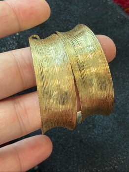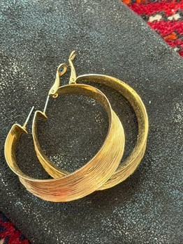 Gold plated 24 krt , Large hoop earrings with a textured, brushed gold finish.