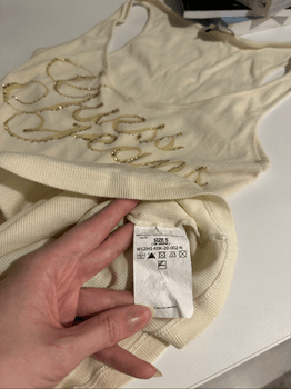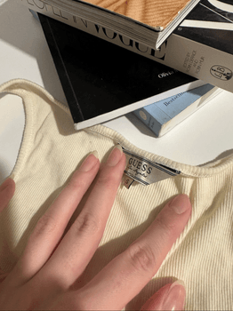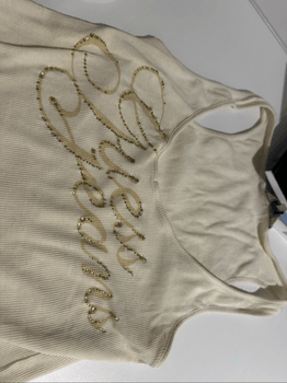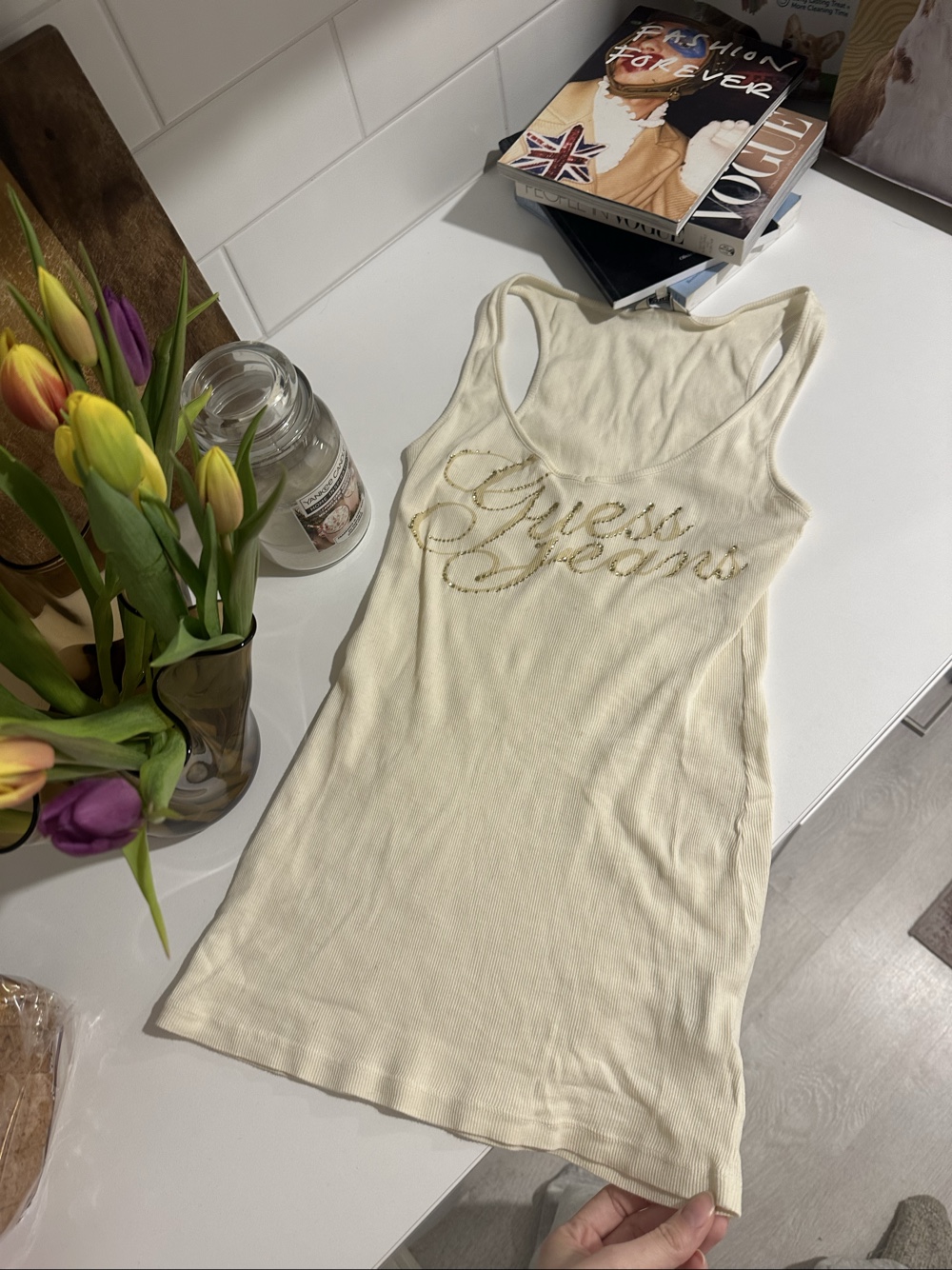 Cream color top with gold color ”Guess Jeans” print on the front. 🌟