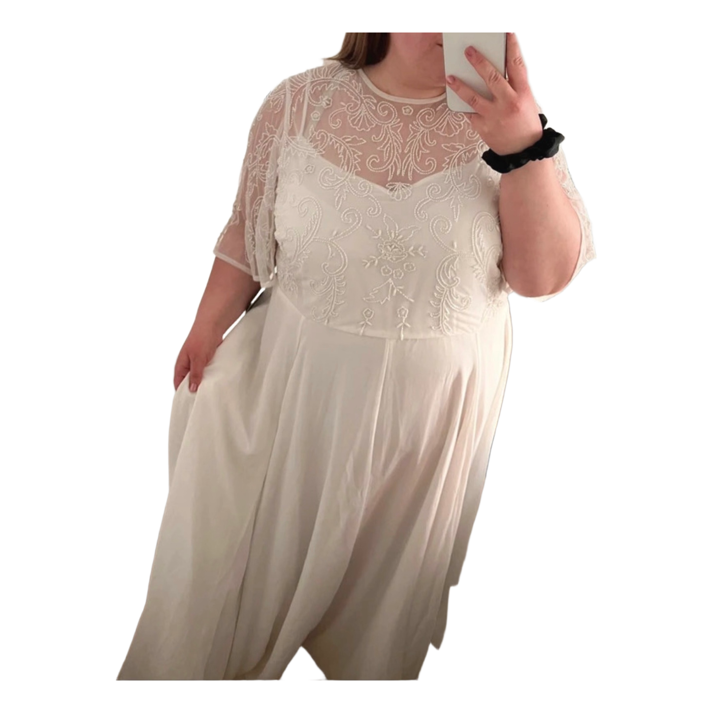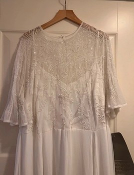 White hem-embellished wedding dress