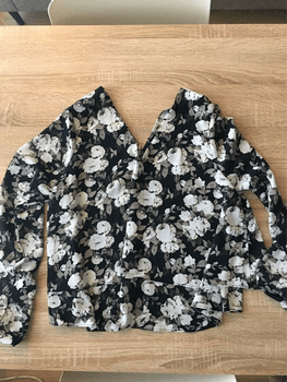 Elastic band fastenings on the sleeves, falls nicely from the waist and is loose!