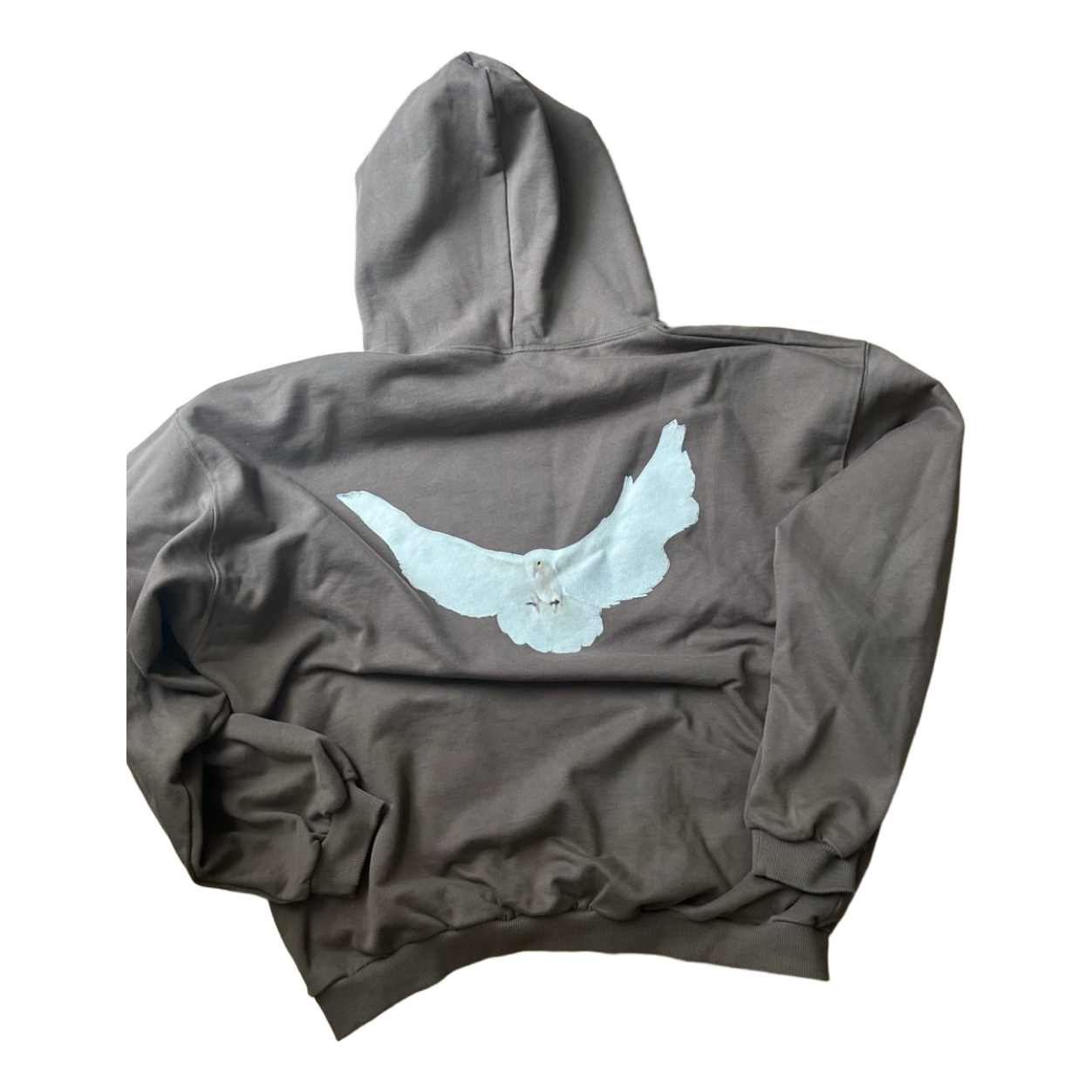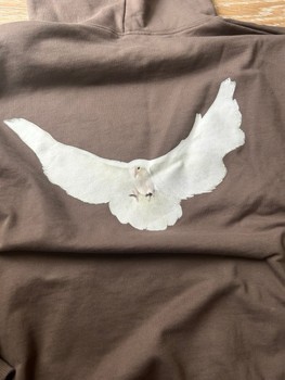 Brown oversized hoodie with a white dove print on the back and the Gap logo on the front. Size L.