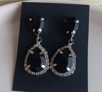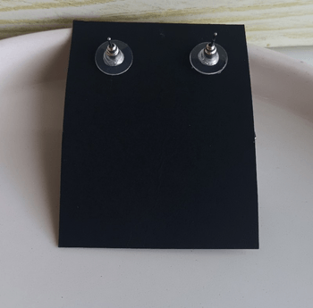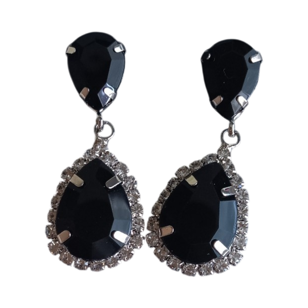 Black glass stones, silver-colored edge, backs included. Unused. Jewelry metal alloy.