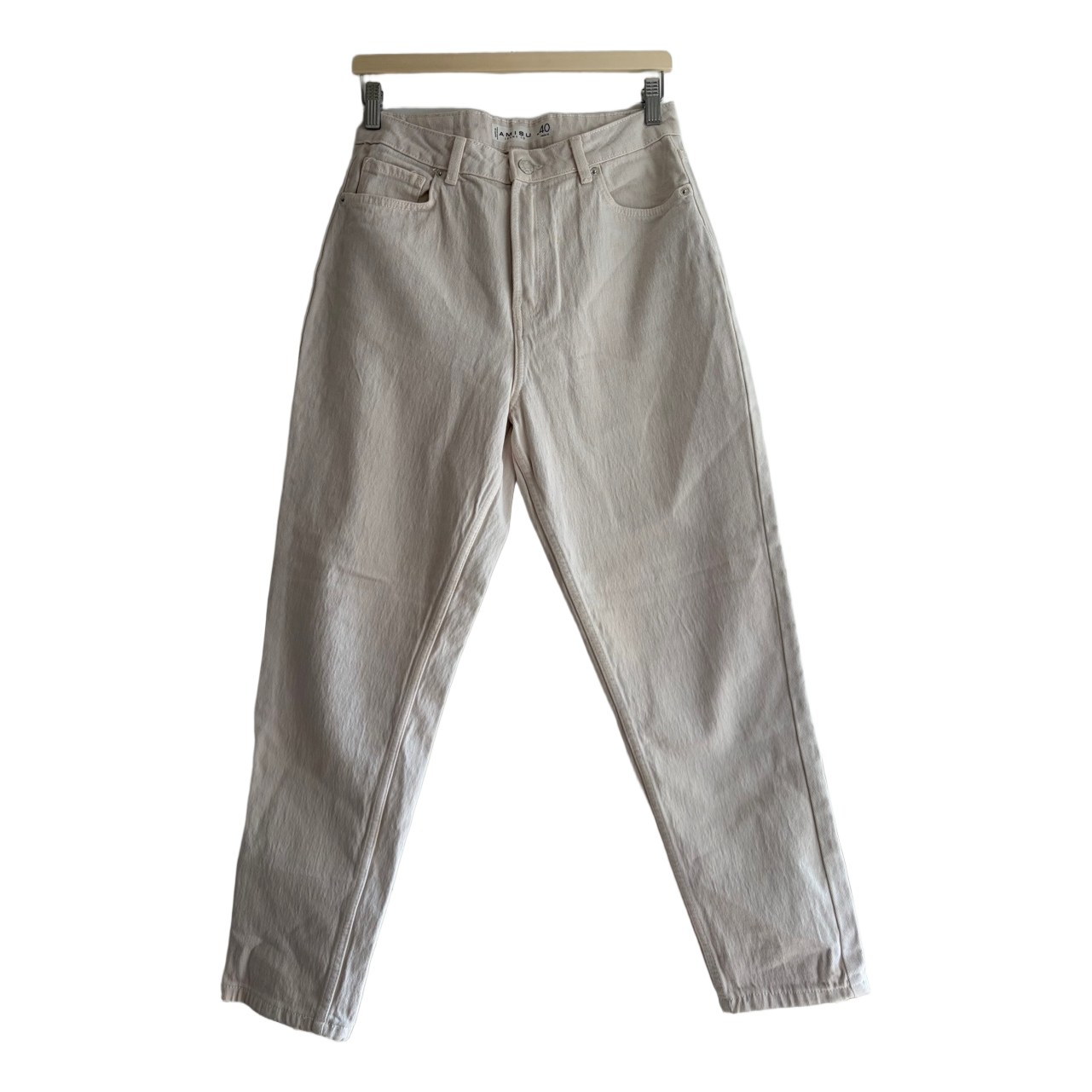High-waisted beige jeans with a five-pocket design and button closure. Size 40. From New Yorker.