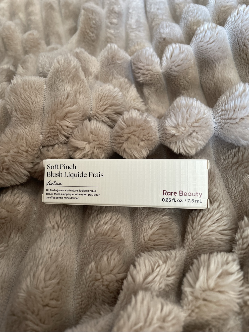 Soft Pinch liquid blush by Rare Beauty in shade Virtue. Long-lasting, blendable liquid formula. 7.5 mL size.