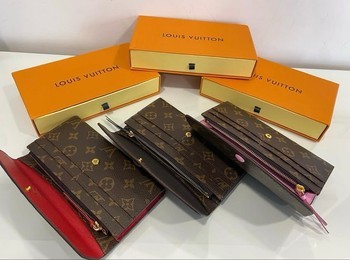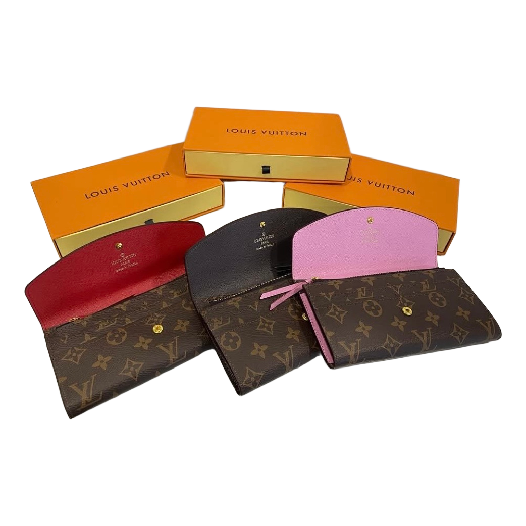 Louis Vuitton monogram canvas wallet with internal zip pocket and button closure. Available in multiple interior colorways, complete with original brand boxes.