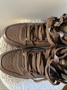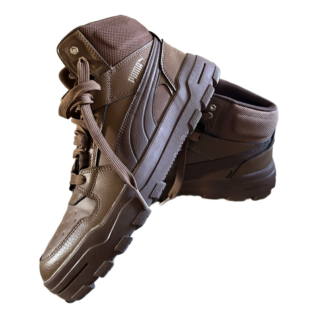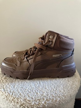 High-top brown sneakers from Puma. Durable rubber soles with textured grip. Only wear it one time.