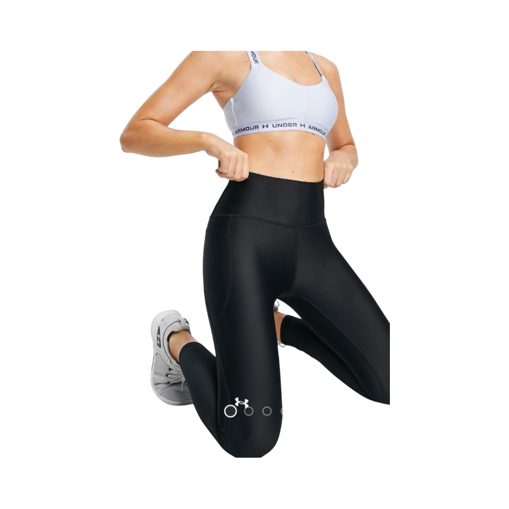 Black high-waisted training leggings, small logo on the leg.