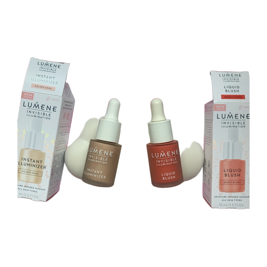 2x Lumene Invisible Illumination Instant Illuminizer Beauty Drops: liquid highlighter shade Golden Hour + liquid blush shade Berry Bloom. Both unopened, unused, size 15 ml.