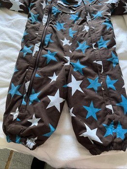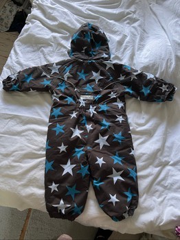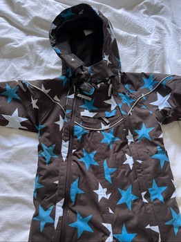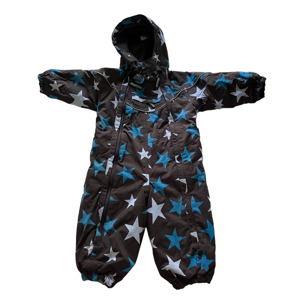 Brown star-patterned padded snowsuit. Size 86