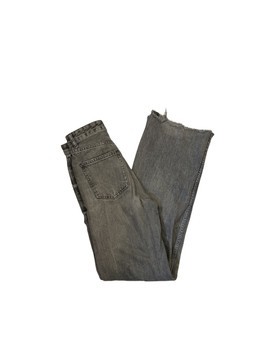 Grey high-waisted jeans with raw hem detailing. Size 34.