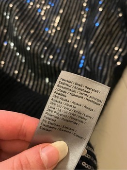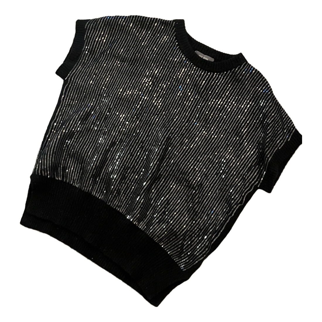 Black sequin-patterned knit vest. Size S, made of alpaca, wool, polyamide and elastane.